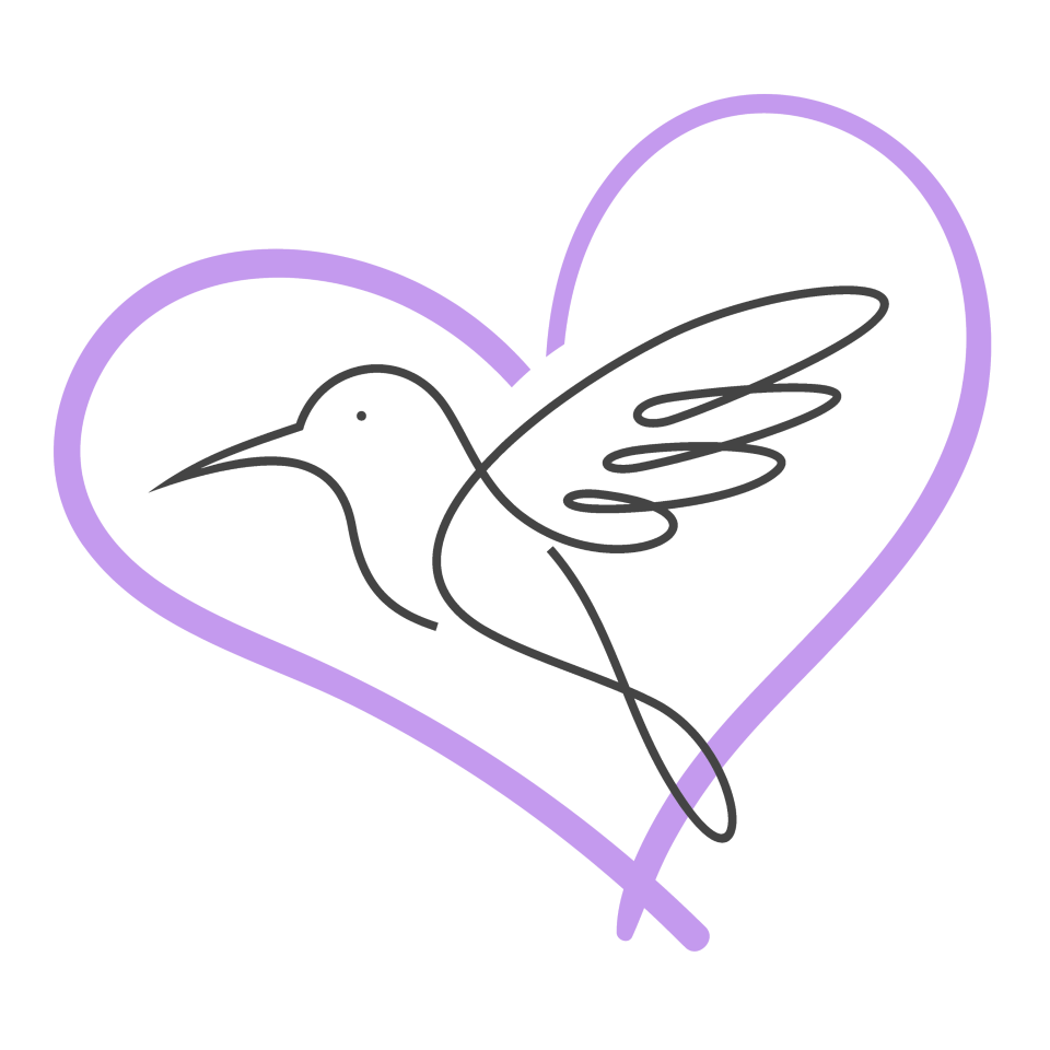 The hummingbird logo was an evolution. I was sitting outside journaling and trying to draw what I thought I wanted - an abstract yoga sitting person with a glowing heart.